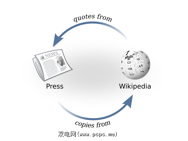 Wikipedia可靠性的另一个有趣问题是循环报告问题,其中Wikipedia文章最终被间接引用。例如,如果新闻文章实际上是在Wikipedia上获取了一条信息,则社区编辑人员可能会将该文章用作Wikipedia文章的引用,从而破坏了引用系统。