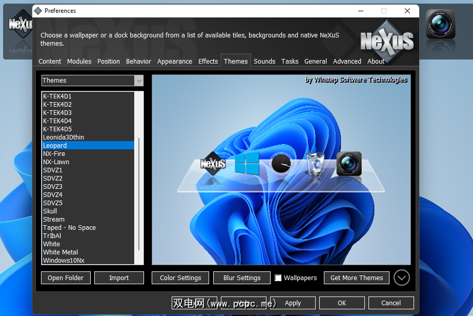 WinStep Nexus Dock 还包括各种不同的主题。要选择替代主题,请单击主题选项卡。在该选项卡上选择不同的主题,然后单击应用以保存新设置。
