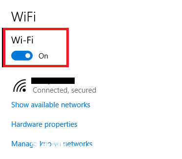 要在不使用操作中心(或任务栏上的Wi-Fi图标)的情况下打开和关闭Wi-Fi,则需要转到开始>设置>网络和Internet > Wi-Fi ,然后滑动屏幕上的切换按钮。