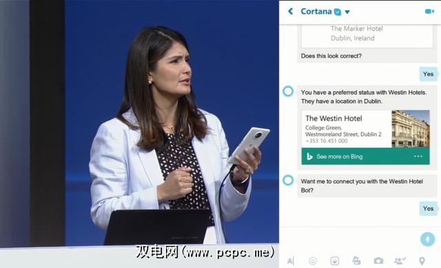 Cortana不仅可以直接在其他应用程序中使用,而且还可以与机器人(基本上是第三方服务提供商的插件)合作,从而丰富Cortana的智能产品。例如,Cortana可以利用这些机器人的帮助来跟踪包裹,在餐厅预订座位,订购比萨饼或预订酒店房间。