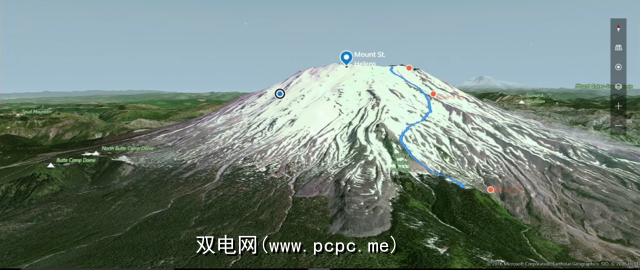 在构建主题演讲中,他们展示的是新的墨水功能,无缝地适应3D地图,例如圣海伦斯山之一。