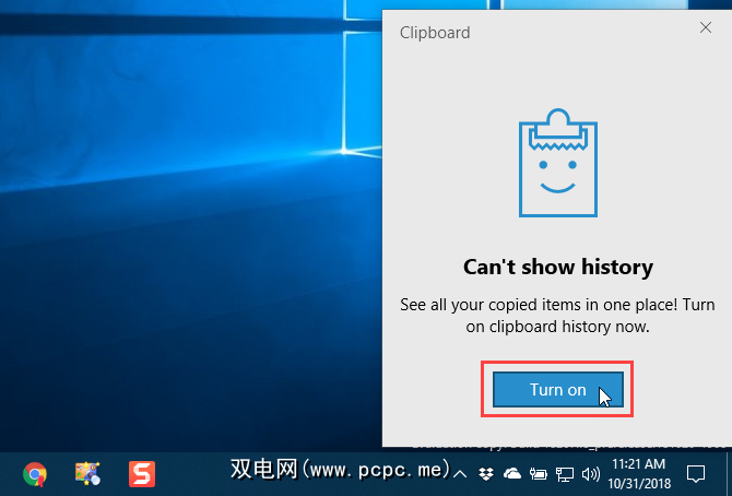 要访问剪贴板历史记录,请按 Windows键+ V 。如果可以将项目粘贴到其中的程序(如记事本或Word)处于活动状态,则剪贴板将显示在光标的正下方。