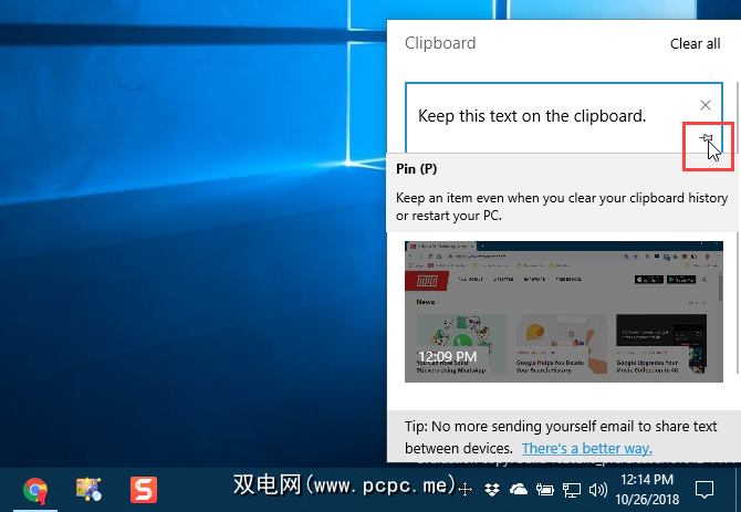 重新启动PC,剪贴板中存储的项目将被自动删除。但是您可以通过固定项目来强制项目保留在剪贴板中。