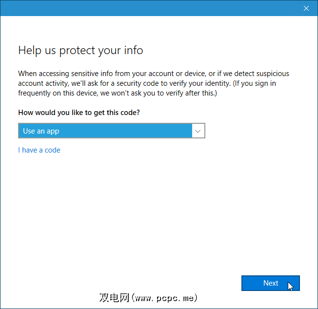 系统会要求您提供安全码,可以通过以下两种方式之一获得安全码:使用电子邮件或使用应用,例如Authy,Google Authenticator或Microsoft Authenticator。选择一个选项,然后单击下一步。