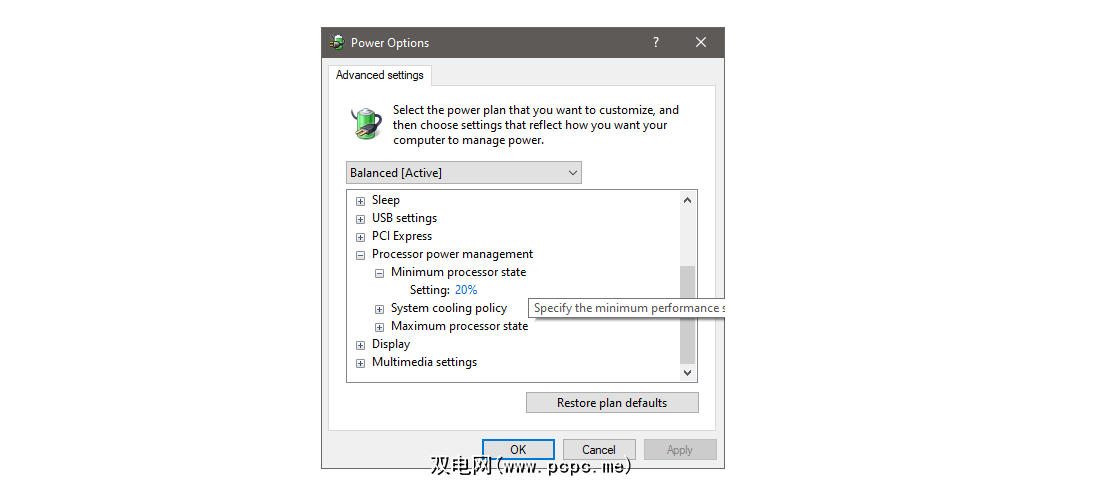处理器状态是指 CPU 在执行高强度任务时会消耗多少电量。如果您设置的最低处理器状态较低,则可能会限制设备音频输出的供电。反过来,当您的音频设备难以保持通电时,这会导致爆破音和噼啪声。
