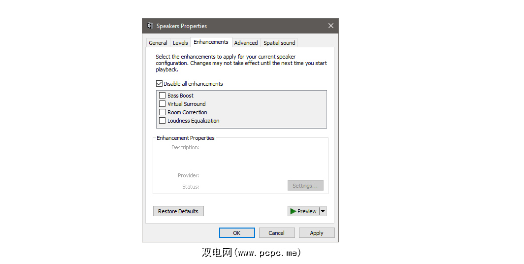 Windows 的音频增强选项通常是一种有用的设置,可以提高输出设备的音频质量。
