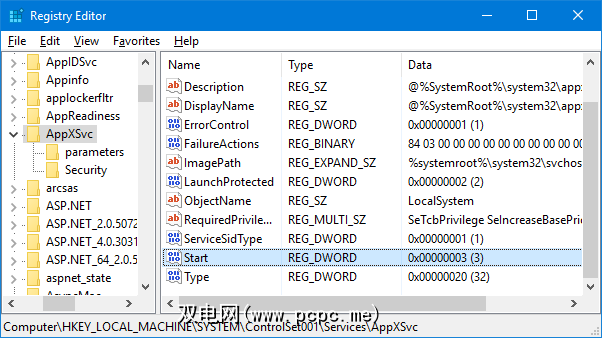 HKEY_LOCAL_MACHINE\SYSTEM\ControlSet001\Services\AppXSvc