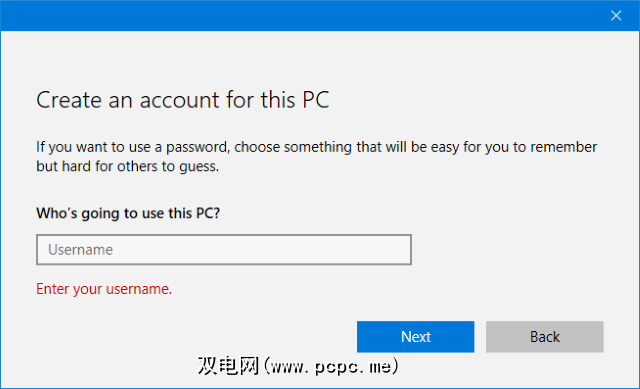 在新窗口中,单击我没有此人的登录信息。然后点击添加没有Microsoft帐户的用户。填写字段,然后点击下一步。然后注销您的帐户并登录到新帐户。