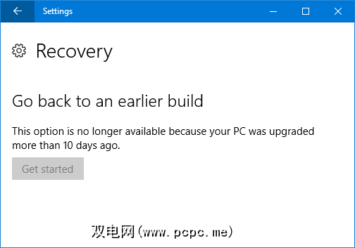如果距更新不到10天,那么您仍可以回滚到以前的版本。为此,请按 Windows键+ I 打开“设置"。导航到更新和安全>恢复。在回到较早的版本下,单击使用入门并按照说明进行操作。