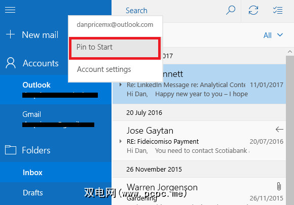 每次要查看电子邮件时,打开应用并滚动查看一长串收件箱可能很繁琐。通过将最常用的地址直接固定到“开始"菜单,可以节省一些时间。