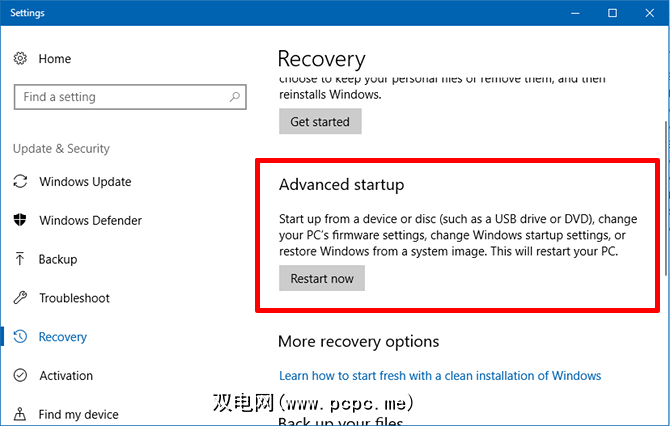 要将Windows 10重新启动到安全模式,请导航至“高级启动"选项: