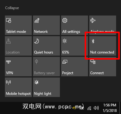 如果看不到蓝牙图标,请参阅我们的自定义指南操作中心,以便您可以添加蓝牙图标。您还可以花一些时间删除不必要的Action Center快捷方式,以缓解一些混乱情况。