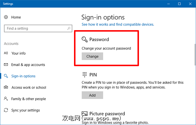 要在Windows 10中更改Microsoft帐户密码,请执行以下操作: