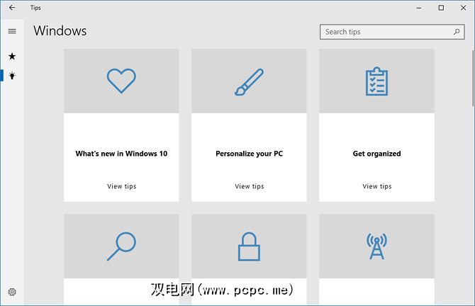 提示应用程序是一个离线知识库到处都是有用的提示和技巧,它们将向您介绍您所不知道的各种漂亮的Windows 10功能。许多人认为它是Windows一直需要但从未有过的“缺失手册"。而且,每个提示都方便地将您链接到相关设置,因此您可以零努力地更改它们。