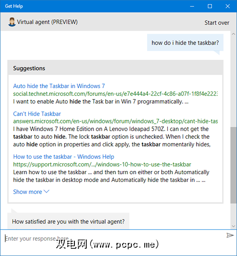 虚拟代理就像是完全自动化的在线聊天支持。感觉就像您在和另一端的人说话,但这实际上只是一个机器人。您只要在问题中提出自己的疑问,就可以在任何主题上寻求帮助,虚拟代理将回复Microsoft相关文章。