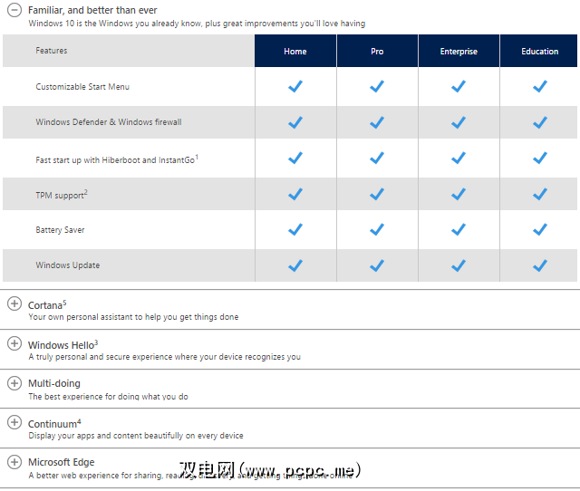 当然,这并不是全部。家庭版将缺少域加入,组策略,BitLocker,远程桌面和其他一些与业务相关的功能。