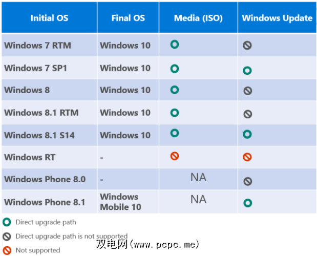 Windows 10版本与Windows 7和8类似,您将升级到与当前Windows版本相同的版本。下面的升级矩阵显示了详细信息。如果可以直接升级,则可以保留Windows设置,个人文件和大多数应用程序。