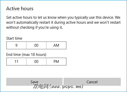 可通过 Update&security 访问,这里的一些功能已经过调整。如果您使用活动时间,这会在特定时间段内阻止系统重新启动,则您现在可以指定最多18小时的范围。