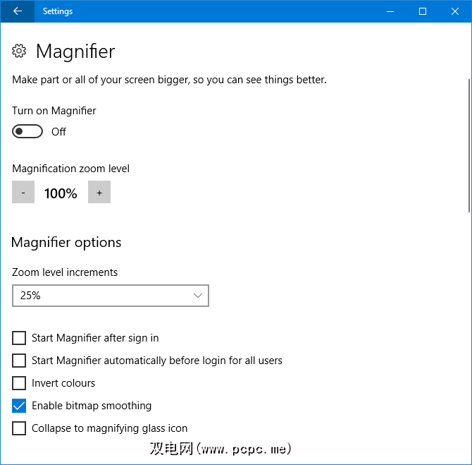 首先,放大镜现在为您提供了反转颜色和启用位图平滑的选择。后一个选项旨在使放大时的内容看起来更清晰。