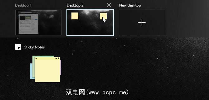 如果将笔记放在此桌面中,则它们不会显示在其他桌面中。完成后,再次打开“任务视图",然后选择您的初始桌面。
