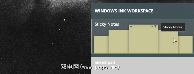也可以使用Ink Workspace添加便笺。单击工作区图标,然后选择便利贴。
