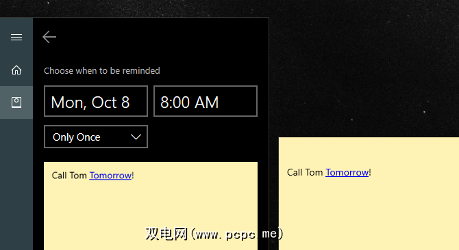 日期将自动成为链接。单击链接以激活见解。您将被提示在便笺底部的添加提醒。