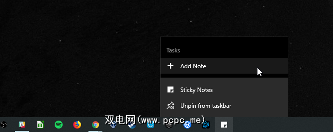 要使用现在固定的图标创建新便笺,请右键单击便笺任务栏图标,然后选择添加便笺。