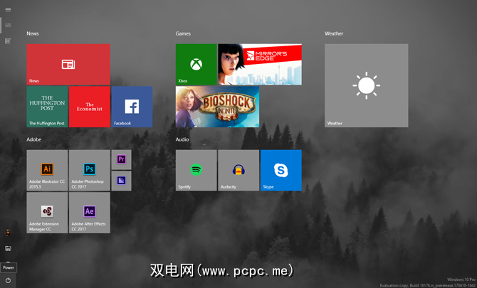 现在,当您打开“开始"菜单时,您会看到一个占据整个屏幕的界面。这并不是Windows 8的工作方式,但是如果您希望为应用程序块留出更多空间,那就很好了。