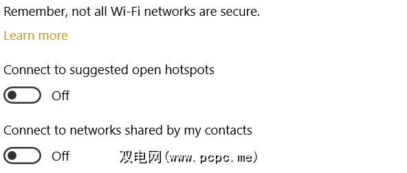 如果您希望完全打开Wi-Fi Sense,并且不想访问朋友共享的热点,请取消选择连接到建议的开放热点,然后连接到我的联系人共享的网络。