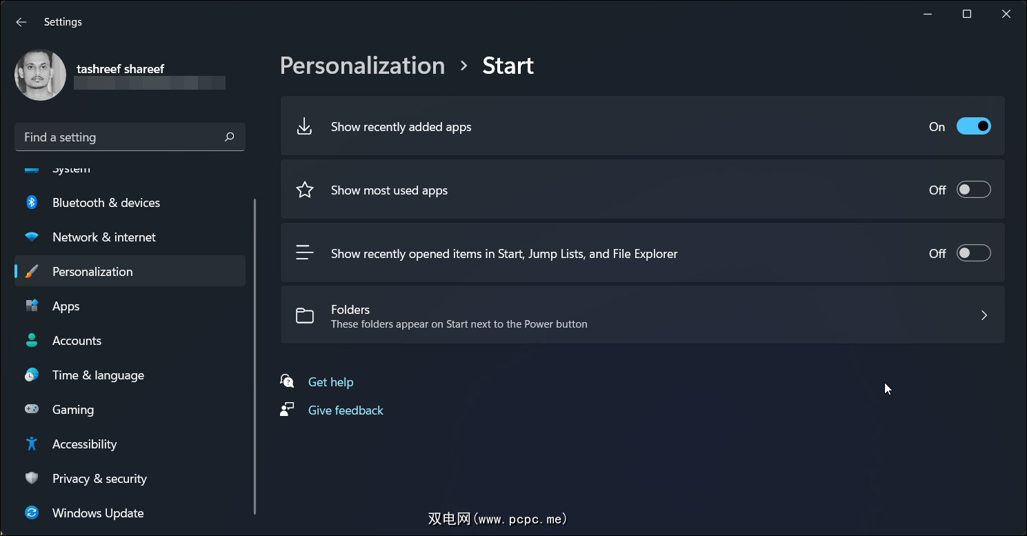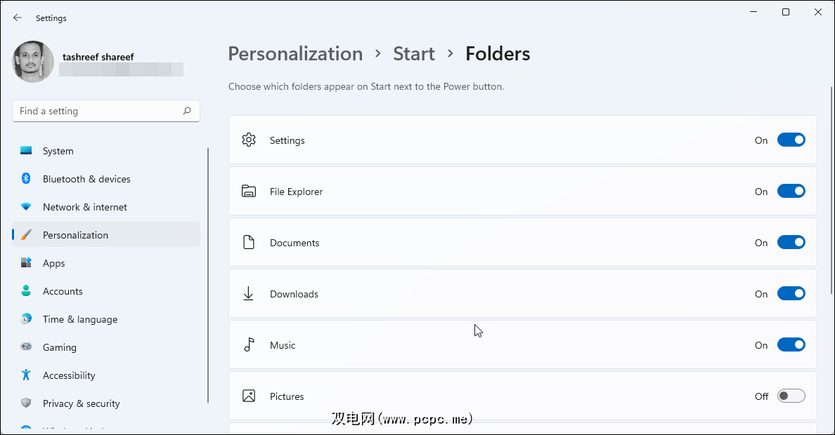 Windows 11 不再允许您将文件夹固定到“开始”菜单。相反,您可以将系统文件夹(包括文件资源管理器、设置、文档、下载、音乐、图片、视频和个人文件夹)添加到开始。