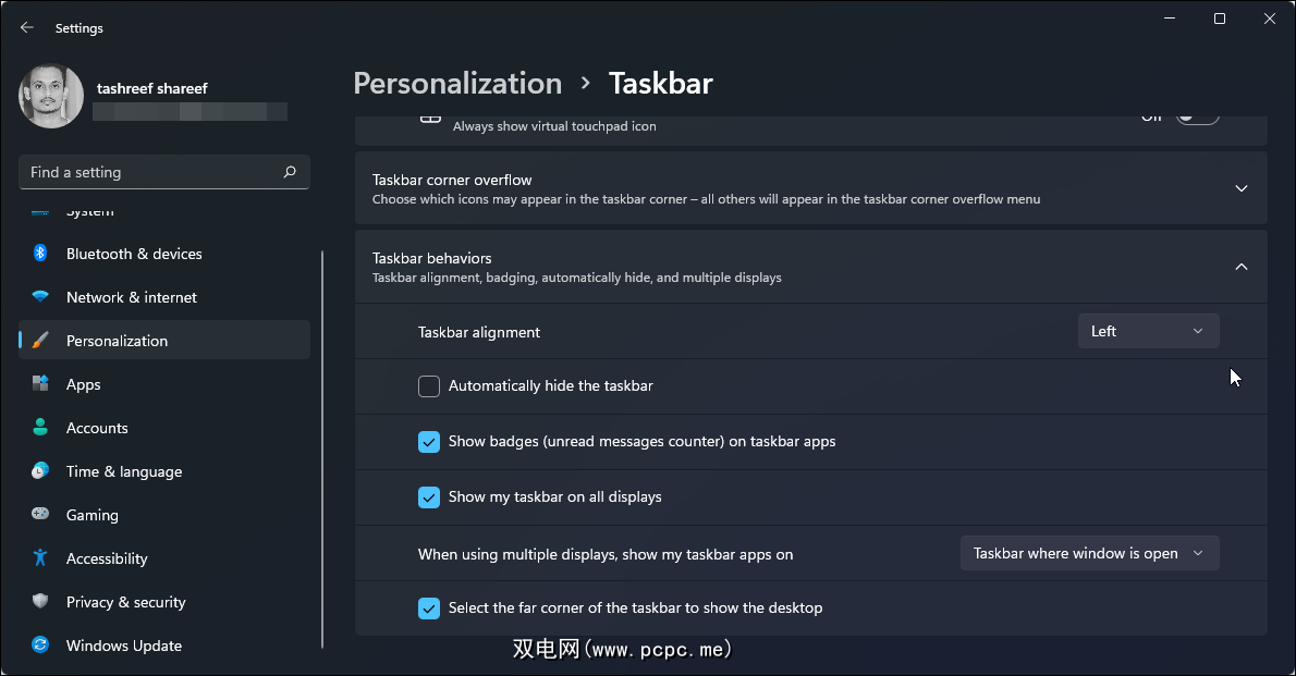 要更改任务栏对齐方式: