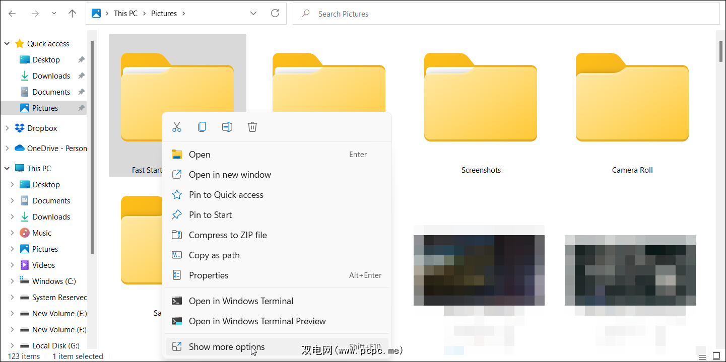 但是,经典上下文菜单仍然是 Windows 11 的一部分。要访问它,请在文件资源管理器中右键单击并选择显示更多选项以打开溢出菜单。您还可以使用Shift + F10键盘快捷键来访问此选项。