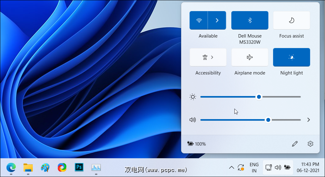 单击网络、扬声器和电池图标以访问设置面板。它包括您的亮度和音量控制、连接选项和其他辅助功能。