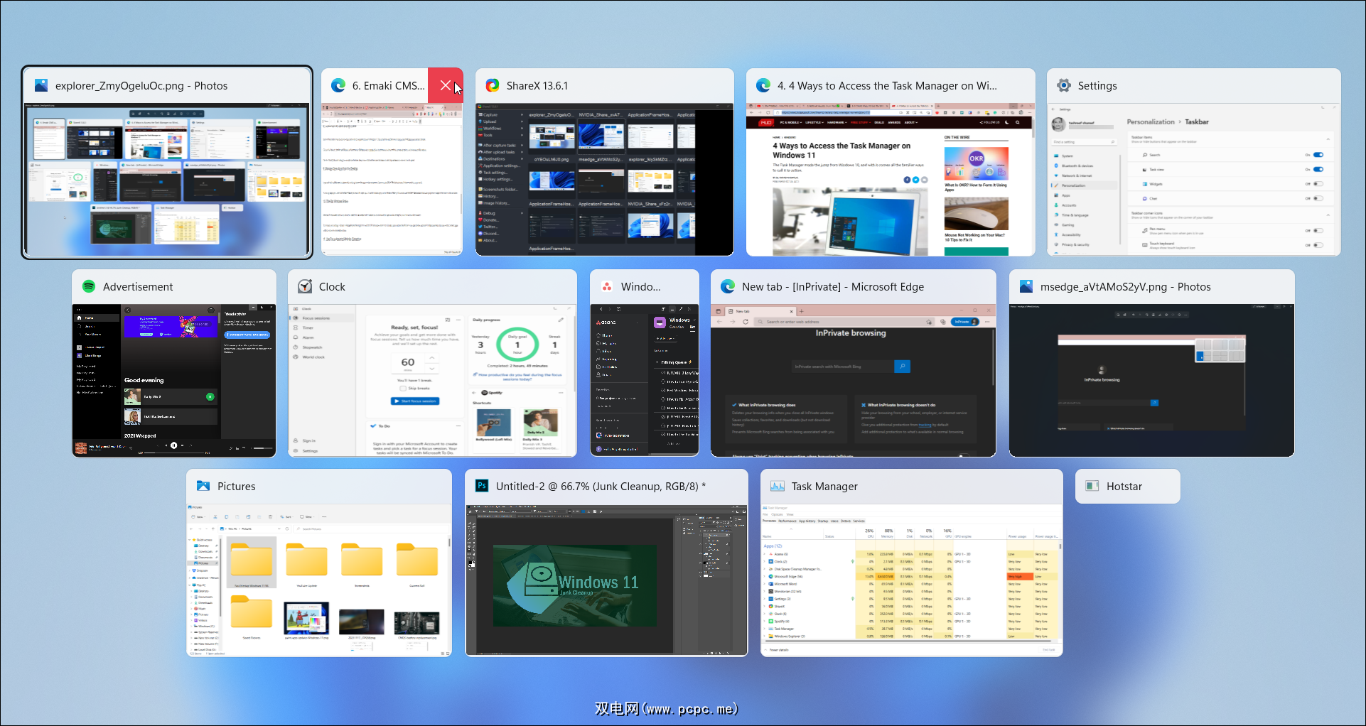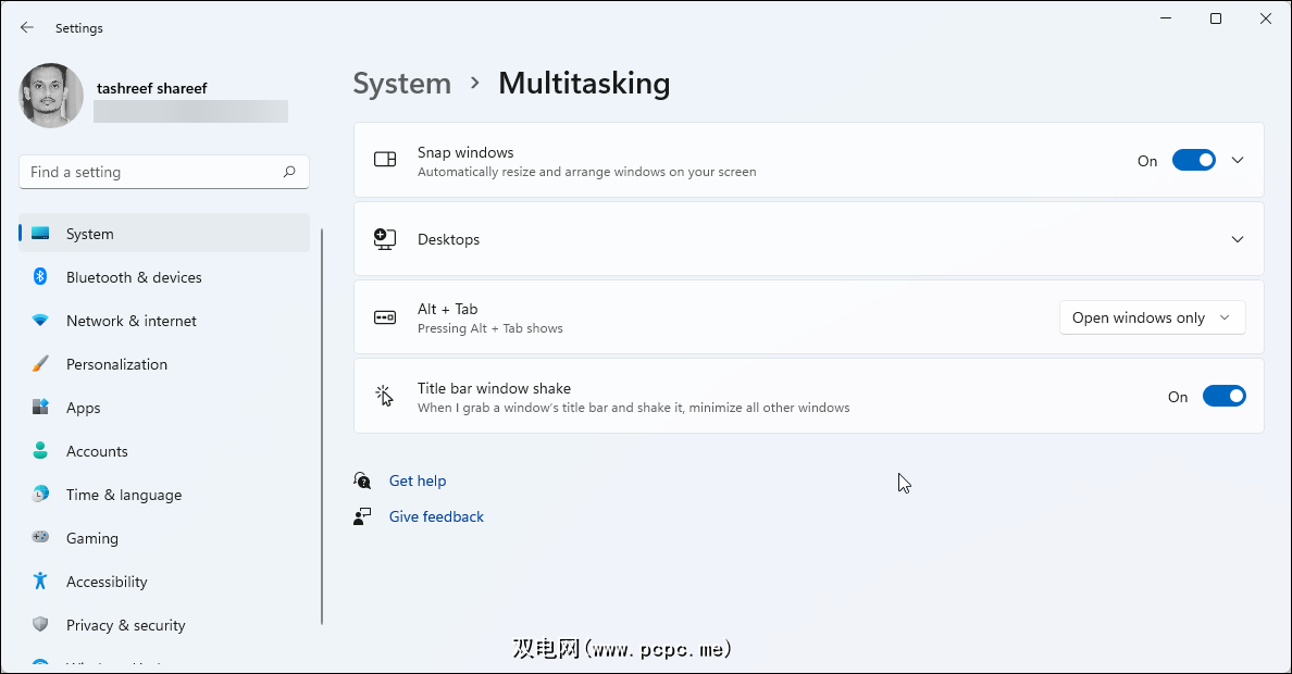 Windows 11 有另一个很酷的技巧,称为“标题栏窗口抖动”。启用后,它允许您最小化所有打开的窗口,除了您的活动窗口摇动。