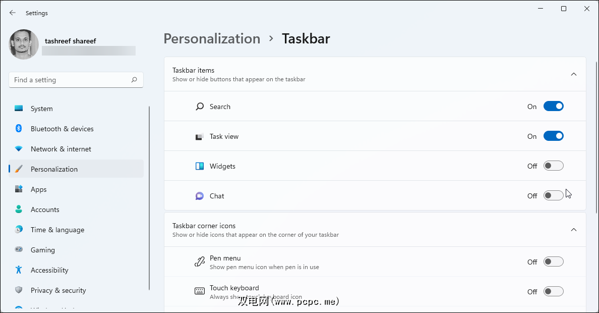 默认情况下,新的任务栏具有 Widget and Chat (Microsoft Team) 应用程序。小部件应用程序可让您一目了然地查看与天气、运动、附近交通、Windows 应用程序提示、日历等相关的信息。但是,如果您希望有更多的任务栏空间,可以在设置中将其关闭。