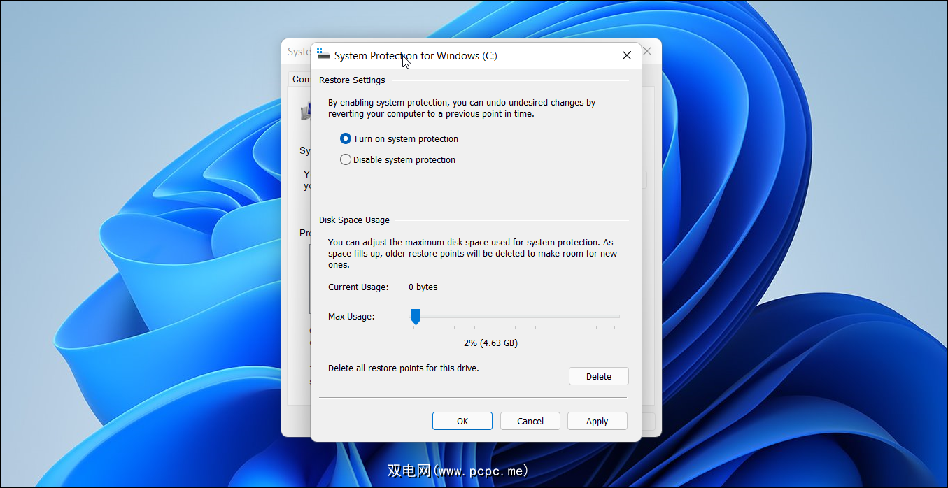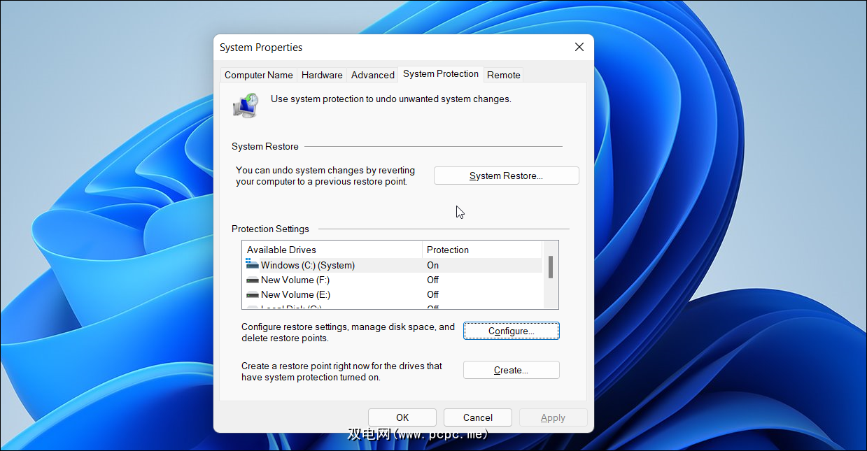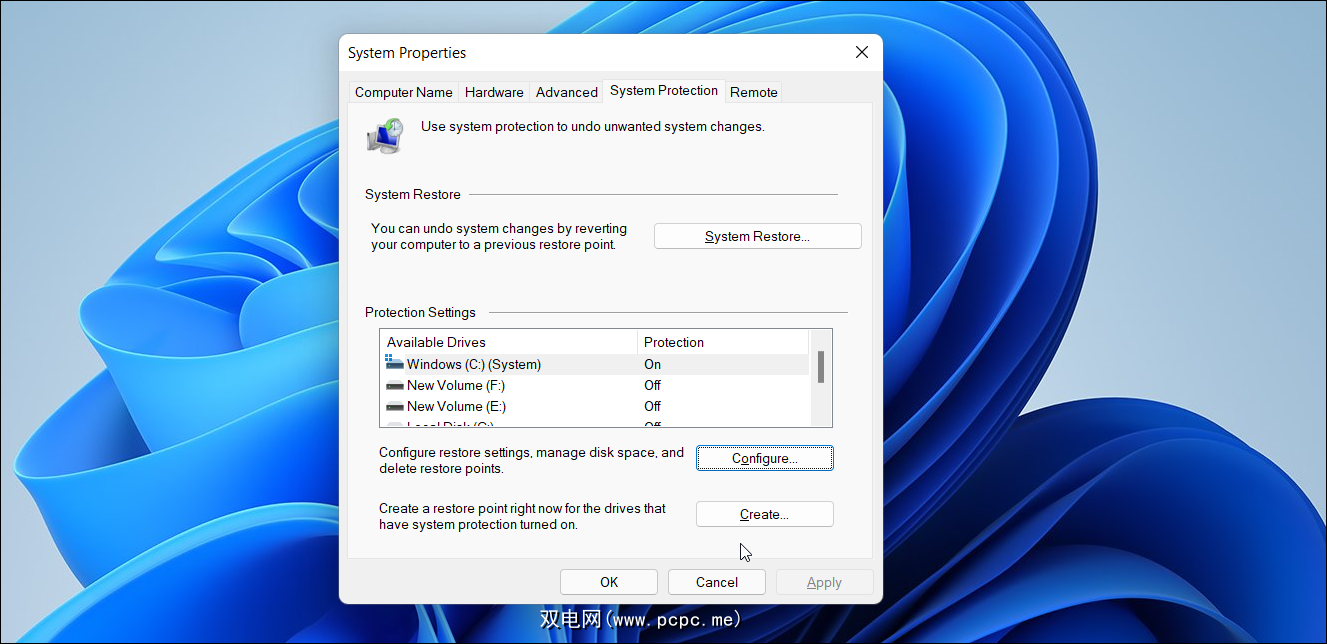 默认情况下,Windows 每周都会创建一个新的还原点,并将其替换为最旧的还原点以管理存储空间。但是,您也可以根据需要手动创建新的还原点。
