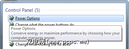 要访问Windows 7电源管理计划,请转到>开始并在搜索字段中输入>电源选项。在>控制面板下,选择最上面的结果,即>电源选项。