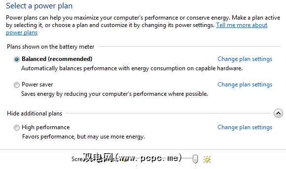 Windows 7提供了三种标准电源计划:平衡,省电和高性能。