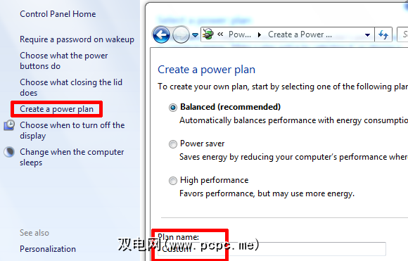 您也可以通过单击左侧边栏中的相应链接来创建自定义电源计划。