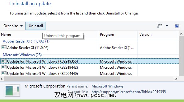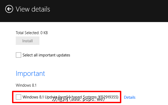 大小可以很好地指示是否还是而不是更新包含KB2919355,它的大小约为880 MB。要手动启动安装,请单击查看详细信息,查找 KB2919355 ,选择它,然后单击 Install 。下载并安装此更新可能会花费大量时间。您应该至少计算一个小时。