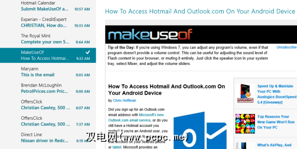 使用本机电子邮件应用程序将是一个错误。尽管很吸引人,但它是从“开始"屏幕启动的全屏应用程序,无法“放大"或缩小。与手指相比,它在鼠标方面的优化程度更高,并且在遇到无法下载的电子邮件时会崩溃回到“开始"屏幕。