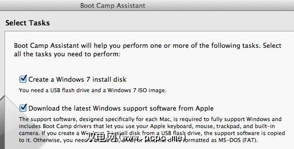 在Boot Camp助理中,勾选所有三个项目。按顺序,这些将创建您的USB安装盘,下载Windows Boot Camp驱动程序,并在完成这两个安装后开始安装。请注意,尚不正式支持Windows 8,但是我们可以在Boot Camp助理中将其作为Windows 7的实例传递。