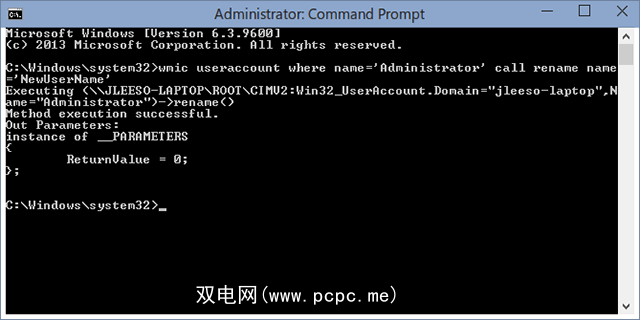 现在,管理员帐户将重命名为任意名称您输入的,在这种情况下为 NewUserName 。此方法适用于Windows 7、8.1和10。