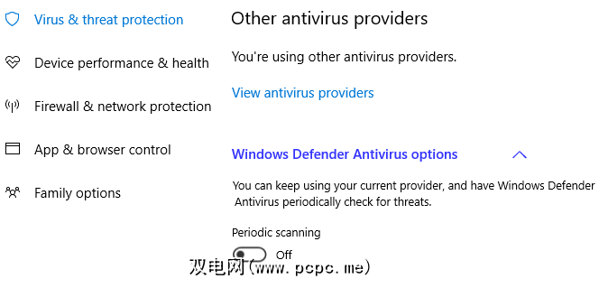 要开始使用,请在您的开始菜单中找到该应用程序,将其打开,然后点击左侧菜单中的病毒和威胁防护。展开 Windows Defender防病毒选项,然后轻按定期扫描旁边的开关。