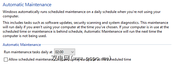 在以下屏幕上,您可以选择每天自动维护运行的时间,以及选择是否允许Windows唤醒计算机以执行任务。