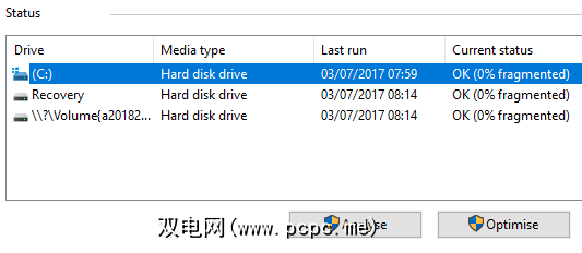 前往控制面板>管理工具>磁盘碎片整理和优化,然后突出显示要进行磁盘碎片整理的驱动器。点击优化以开始该过程。可能需要很长时间,具体取决于硬盘驱动器上的数据量。