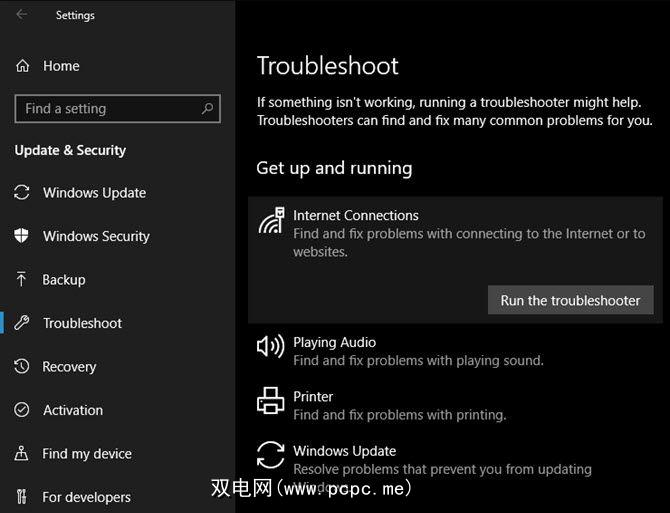 Windows 10的内置疑难解答