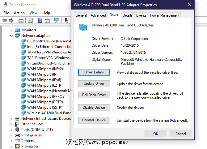 在驱动程序选项卡上,可以选择回滚驱动程序卸载最新的更新并返回上一个更新。如果您在更新后开始遇到此问题,请使用此选项。