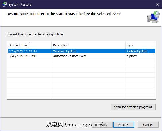 Windows中的“系统还原"功能使您可以在计算机正常工作时返回上一个点。如果您的问题是最近开始的,则应尝试此操作以查看是否可以及时返回。
