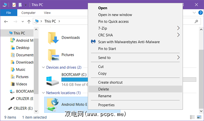 返回File Explorer,导航至此PC 再次,然后在“网络位置"部分下查看。您应该看到带有您昵称的FTP服务器。双击以进行连接。